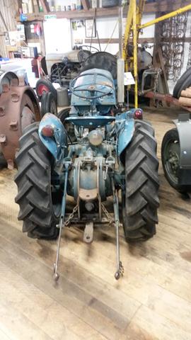 Die ganze Halle ist den grauen Ferguson gewidmet . Alle sind jedoch nicht grau. So befindet sich in der Ausstellung auch ein Traktor, der bei der schwedischen Armee war und dementsprechend militärkonform in Grün ausgeliefert wurde. Bemerkenswert sind die Tarnscheinwerfer und der Rammschutz vor dem Kühler.